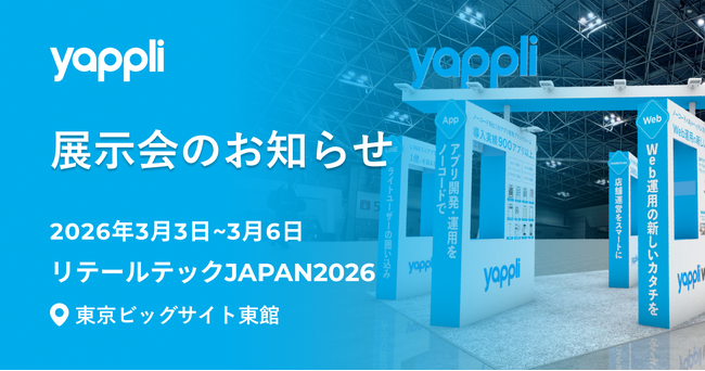 株式会社ヤプリ(本社:東京都港区、代表取締役:庵原保文、以下「ヤプリ」)は、2026年3月3日(火)~3月6日(金)に東京ビッグサイトで開催される「リテールテックJAPAN 2026」に出展いたします。