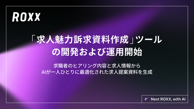 【ROXX】AIによるパーソナル求人説明補助プロダクト「求人魅力訴求資料作成」ツールの開発および運用開始に関するお知らせ