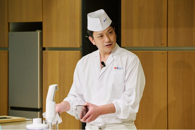 また、「SELECT100 コードレスブレンダー」については「軟骨も砕けるほどのパワフルさと滑らかさで裏ごしの手間を解放してくれるため、自宅でも簡単に料亭の味を再現できるので是非使ってみて体感してほしい。」と、プロの厨房でも通用する性能と自宅でも簡単に使える使いやすさを強調しました。