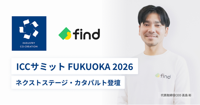 「落とし物クラウド find」を提供する株式会社find(所在地:東京都港区、代表取締役 CEO:高島 彬、以下「find」)は、2026年3月2日~5日に開催される「ICCサミット FUKUOKA 2026」にて、当社代表の高島が「ネクストステージ・カタパルト」に登壇することをお知らせいたします。