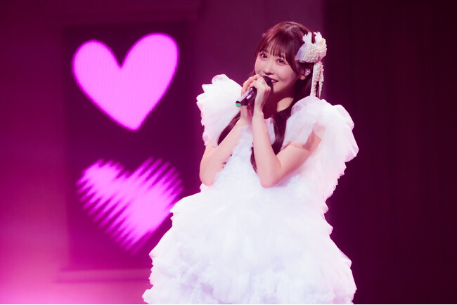 ここからは華やかなピンクの衣装で登場し、生バンド編成で配信されたばかりのソロ第2弾シングル「ぜんぶ可愛いのせい」をライブ初披露。同曲は自己肯定感をテーマにした前向きなナンバーで、サビでは観客のコールが会場いっぱいに響き渡った。「ずるい、かわゆい」ではアイドルらしいキュートな魅力を全開にし、FRUITS ZIPPERの「君の明るい未来を追いかけて」では“ゆいちゃん”コールも響き渡る中、未来へ向かうまなざしを感じさせるパフォーマンスを展開した。