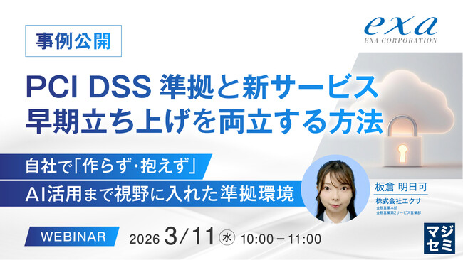 マジセミ株式会社は「【事例公開】PCI DSS準拠と新サービス早期立ち上げを両立する方法」というテーマのウェビナーを開催します。