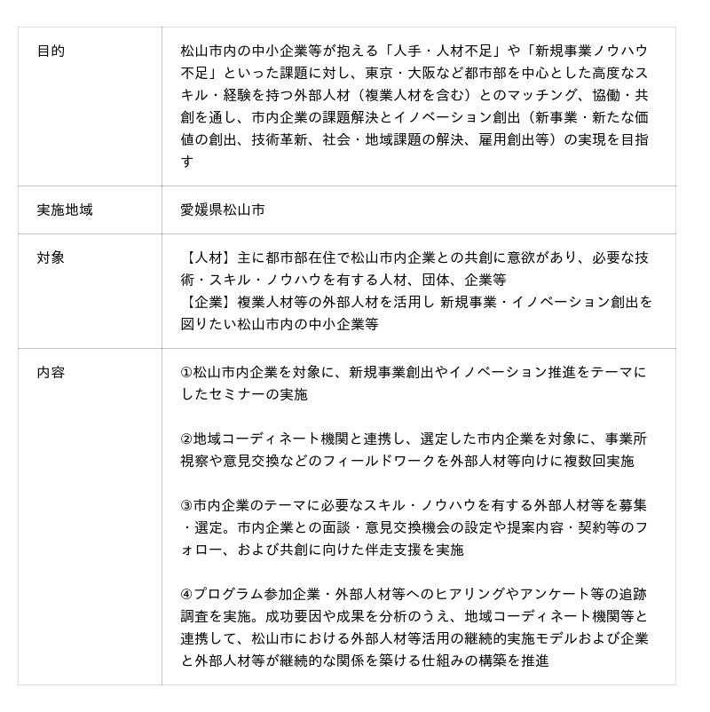 ・外部人材と協働・共創したイノベーション創出に関心のある松山市内・全国の地域企業