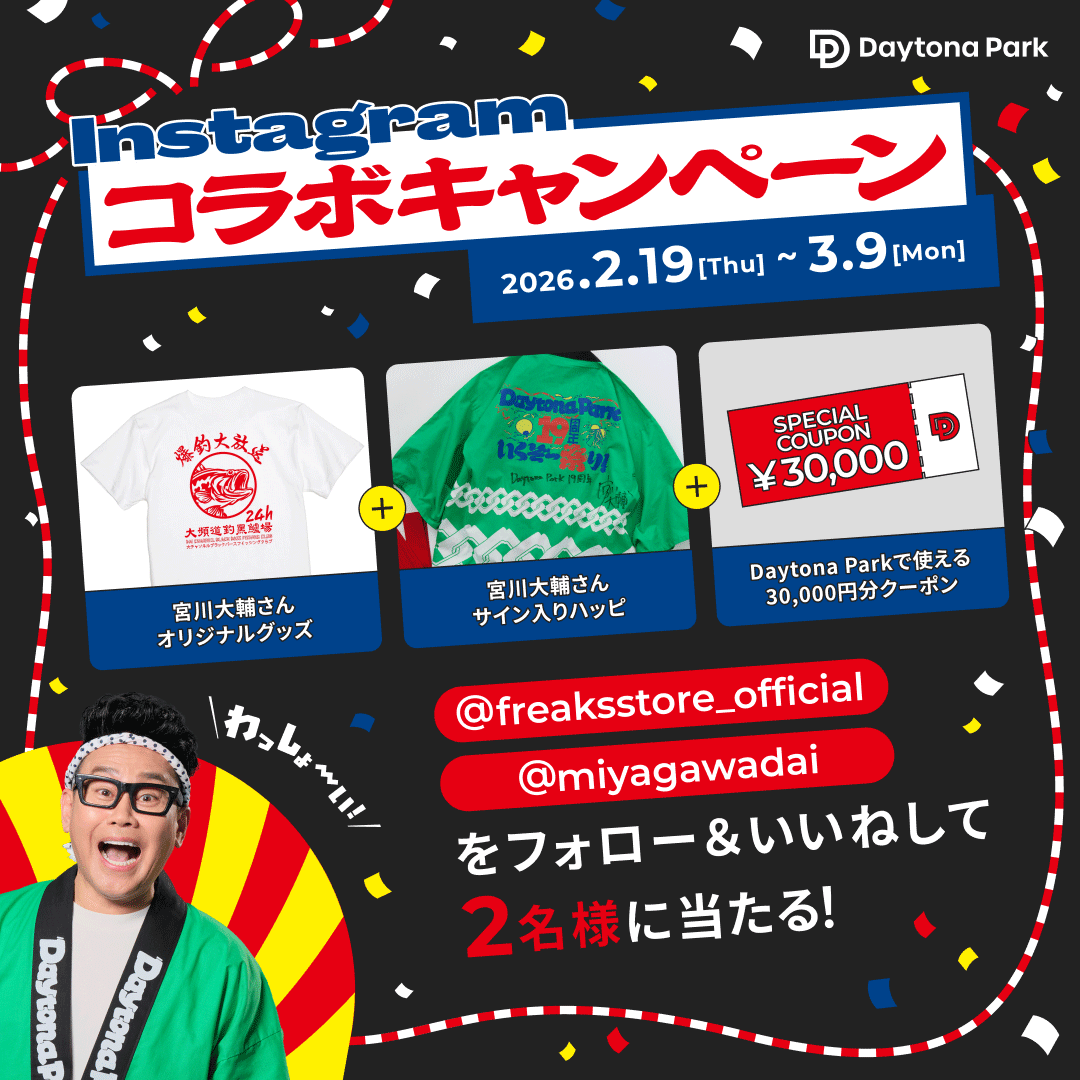 お祭り男『宮川大輔』と盛り上げる! 【19周年いくぞー祭り!】で19日間ワクワク体験FREAK’S STORE公式オンラインストア「Daytona Park」にて、2月19日(木)よりキャンペーン開始