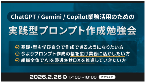XOP、ChatGPT/Gemini/Copilot業務活用のための実践型プロンプト作成勉強会を 2/26(木)に開催