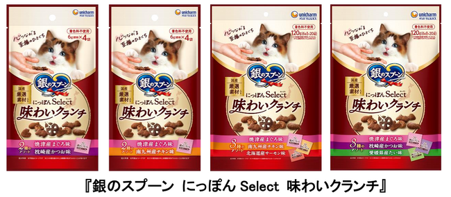 ユニ・チャーム株式会社(代表取締役 社長執行役員:高原 豪久)は、猫用おやつブランド「銀のスプーン」より、日本各地の厳選素材を使用し、着色料不使用で仕上げたドライタイプおやつ『銀のスプーン にっぽんSelect 味わいクランチ』を、2026年3月3日に全国で発売します。