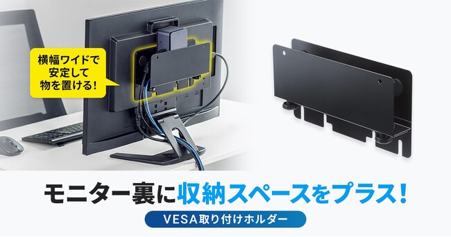 モニター裏に収納スペースをプラスできる、VESA取り付けホルダーを発売