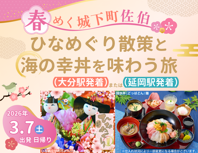 (1)ツアー名称:春めく城下町佐伯 ひなめぐり散策と海の幸丼を味わう旅(2)出発日:2026年3月7日(土) 日帰り