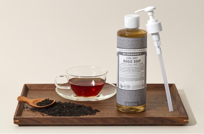 クリーミー泡で毛穴の黒ずみ*¹オフ。アメリカ発の世界的オーガニックボディケアブランド「ドクターブロナー」のマジックソープ季節限定フレグランス「アールグレイ」大容量サイズが、ポンプ付き限定セットで登場