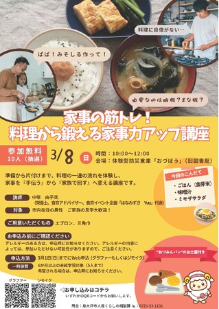 泉大津市は3月8日(国際女性デー)に、子育て世代の男性をメインターゲットとした料理教室を開催します。会場は、料理体験用の施設ではありません。昨年12月にオープンした体験型防災倉庫「おづぼう」。災害用トイレや簡易ベッド、シャワーなどを備え、災害時の暮らしを体験できる施設です。