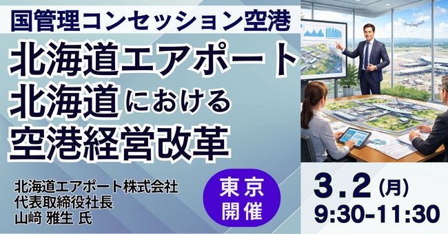 【JPIセミナー】北海道エアポート(株)「北海道における空港経営改革 ~7空港一体運営の可能性~」3月2日(月)<東京開催>