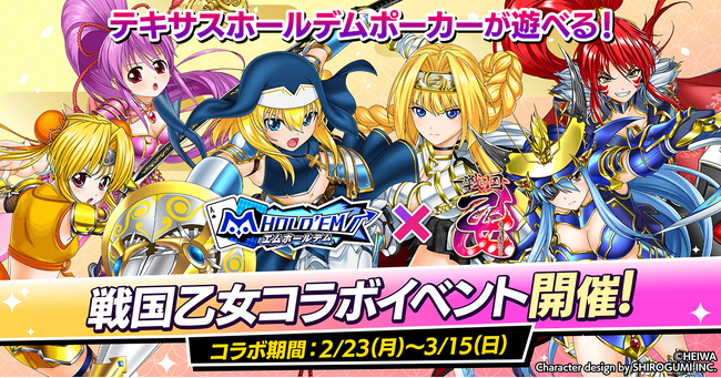 サミー株式会社(本社:東京都品川区 代表取締役 社長執行役員 COO:星野 歩)のスマートフォン向けテキサスホールデムポーカーアプリ「m HOLD’EM(エムホールデム)」は、株式会社平和のパチンコ・パチスロシリーズ『戦国乙女』との復刻コラボイベントを2026年2月23日(月)から3月15日(日)まで開催いたします。