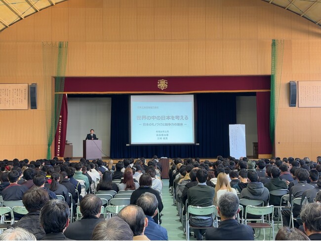 令和8年2月4日、岐阜工業高等専門学校(岐阜県本巣市 校長:大塚友彦 以下「岐阜高専」)にて、学生、地域企業関係者等約600人を対象に、岐阜県知事 江崎禎英 氏による講演会を開催しました。