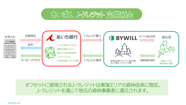 バイウィル、あいち銀行と連携し、中部地方の地域金融機関初となる「カーボン・オフセット付定期預金」の提供スキームを構築