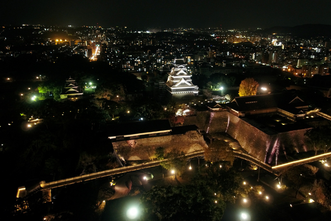 夜の熊本城(ドローン撮影)