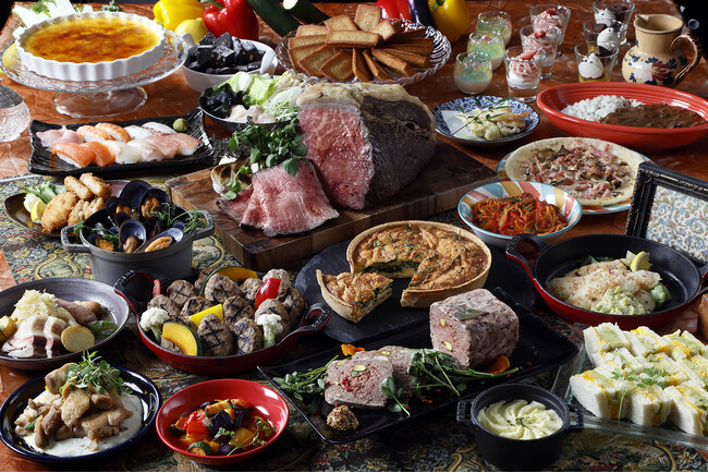 素材本来の持ち味を生かし、素朴さと奥深さが調和する伝統的なビストロメニューをご用意しました。肉の旨みを凝縮した「パテ・ド・カンパーニュ」や、白ワインのやさしい香りとともに海の恵みを味わう「ムール貝の白ワイン蒸し」など、クラシックな逸品がブッフェ台を彩ります。さらに、「桜香るモンブラン」をはじめとする創作性あふれるデザートもラインアップ。季節の趣を感じる華やかなスイーツも、心ゆくまでお楽しみいただけます。このほか、揚げたてでご提供する「天ぷら」や、しっとりと焼き上げた「国産牛ローストビーフ」などのレギュラーメニューも取り揃え、バラエティ豊かな味わいをお届けします。