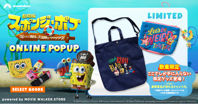 株式会社ムービーウォーカー(本社:東京都千代田区、代表取締役社長:五十嵐淳之)は、映画関連グッズを販売するオンラインサイト、「MOVIE WALKER STORE」にて、『劇場版スポンジ・ボブ 呪われた海賊と大冒険だワワワワワ!』のオンラインポップアップページを開設いたしました。