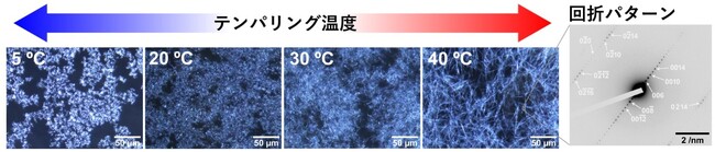 ・食品への応用が期待されるオレオゲル(※1)について、結晶化の際に行う温度調整工程であるテンパリングの温度を調整し、結晶の「長さ」を制御することで、材料の硬さを示す貯蔵弾性率(※2)が大きく向上することを確認。