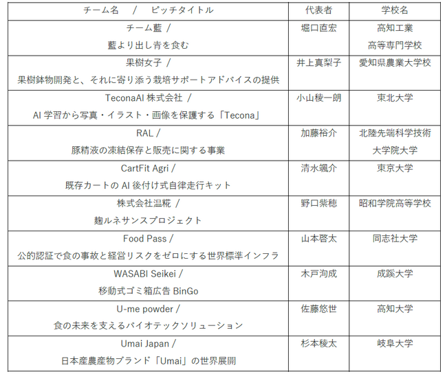 食・農・くらし等の分野で全国の学生からアイディアを募集