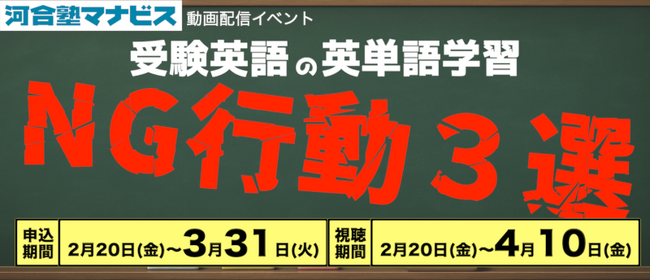 【無料】動画配信型イベント「受験英語の英単語学習 NG行動3選」開催~誰もがやってしまいがちな学習の遠回りを15分で正す!~