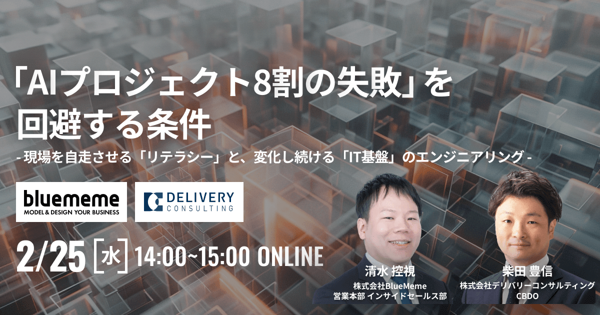 株式会社BlueMemeと共催WEBセミナー:「AIプロジェクト8割の失敗」を回避する条件 - 現場を自走させる「リテラシー」と、変化し続ける「IT基盤」のエンジニアリング -
