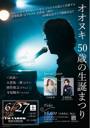 ミュージカルやシャンソンなど、ジャンルを超えて活躍する音楽監督・ピアニスト 大貫祐一郎の50歳記念ライブ開催決定!