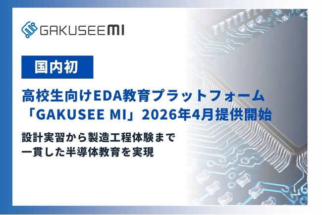 木村情報技術株式会社(本社:佐賀県佐賀市、代表取締役:木村 隆夫、以下「木村情報技術」)は、高校生を対象とした半導体EDA(Electronic Design Automation)教育プラットフォーム「GAKUSEE MI(ガクシー・ミー)」を、2026年4月にリリースすることをお知らせします。
