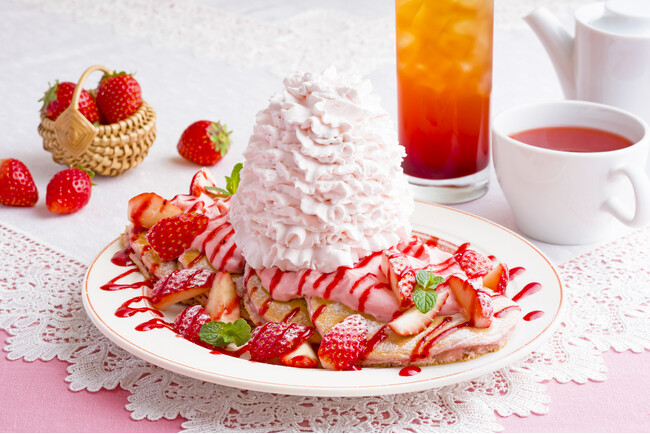 ストロベリークリームパンケーキ/ストロベリーティー
