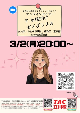 【TAC公務員】「立川市周辺の方必見!女性が公務員になるメリットとは?!」を3/2(月)にオンラインで開催!