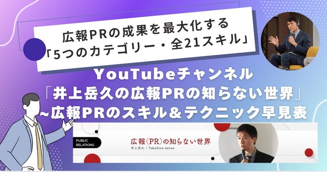 YouTubeチャンネル「井上岳久の広報PRの知らない世界」開設8ヶ月、膨大なノウハウを体系化した「5カテゴリーで21の広報PRスキル&テクニックの早見表」を公開!公開記念キャンペーン!