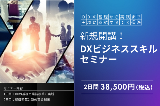 この度、DXの基本概念から業務への実践的な活用方法までのDX推進の実務スキルを体系的に学べる「DXビジネススキルセミナー」を開講いたしました。