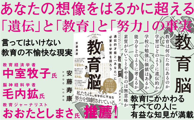 言ってはいけない教育の「不愉快な現実」。行動遺伝学が解き明かす!『教育脳 遺伝的才能と〈あなた〉に必要な学習を語ろう』発売(2/26)。
