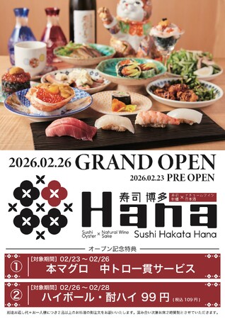 この度、より多くの方々に博多Hanaの魅力を体感して頂きたく、グランドオープン記念2大特典をご用意いたしました。