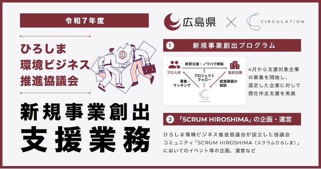詳細はこちら:サーキュレーションが「令和7年度ひろしま環境ビジネス推進協議会新規事業創出支援業務」を受託しました