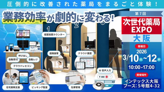 株式会社ソラミチシステムは、2026年3月10日(火)~12日(木)にインテックス大阪にて開催される「第7回 次世代薬局EXPO 大阪」にブースを出展します。