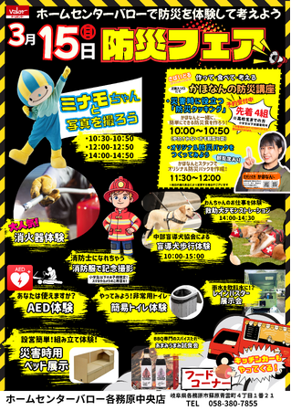 ホームセンターバロー各務原中央店では、2026年3月15日(日)、地域の防災意識向上を目的とした体験型イベント「防災フェア」を開催いたします。