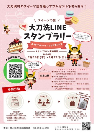 令和8年2月19日(木曜日)から3月22日(日曜日)まで、大刀洗のスイーツ店舗を巡るデジタルスタンプラリーを開催します。皆さまのご参加をお待ちしております。
