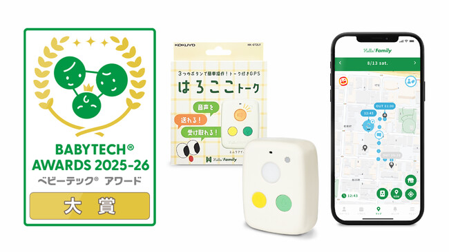 「Hello! Family.」ブランドの音声メッセージ機能付きGPS端末「はろここトーク」が「BabyTech(R) Awards 2025-26」”安全対策と見守り部門”にて大賞を受賞!