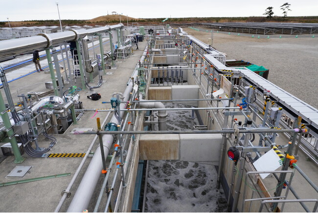 国土交通省が実施する令和7年度上下水道一体革新的技術実証事業(AB-Crossプロジェクト)*に採択された、宮城県(公営企業管理者:千葉 衛)、地方共同法人日本下水道事業団(理事長:黒田 憲司、本社:東京都文京区、以下「JS」)、メタウォーター株式会社(社長:山口 賢二、本社:東京都千代田区)の3社からなる共同研究体が提案した「好気性グラニュールによるダウンサイジング可能な下水処理技術」の実証研究施設が宮城県の県南浄化センター内に完成し、2月10日に完成式典を開催しました。