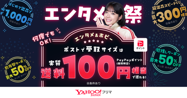 LINEヤフー株式会社(以下、LINEヤフー)が提供するフリマアプリ「Yahoo!フリマ」は、エンタメカテゴリ(※1)の商品を出品・購入の双方でお得に楽しめる「エンタメ祭」を、3月2日から3月30日まで開催します。