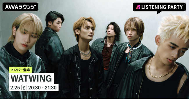 AWA株式会社(本社:東京都港区、代表取締役CEO:冨樫晃己)が運営する、サブスクリプション型(定額制)音楽ストリーミングサービス「AWA(アワ)」は、2026年2月25日(水) 20:30~21:30にて、無料で誰でも参加できるオンライン空間「AWAラウンジ」で、WATWINGのメンバーが音声とチャットで登場するリスニングパーティーを開催いたします。