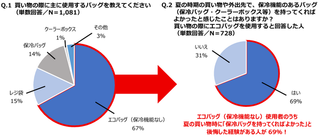 ■エコバッグ普及の一方で、夏の買い物時に「保冷バッグを持ってくればよかった」と 後悔する人が多数
