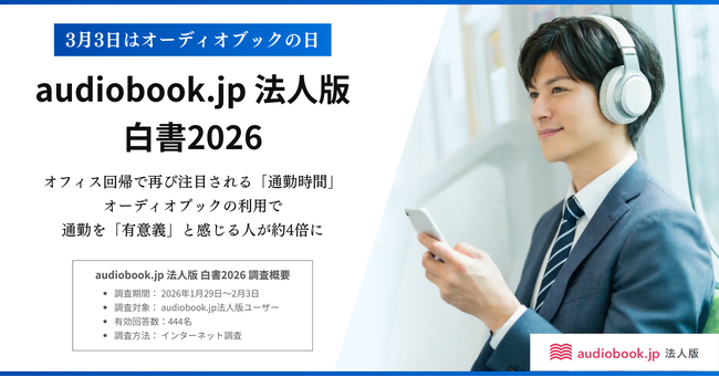 「audiobook.jp 法人版白書2026」公開。約8割が「インプット増」を実感、通勤時間が「価値ある学び時間」に変化