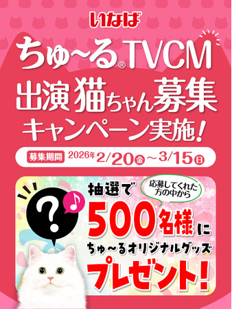 いなばペットフード株式会社(いなば食品グループ 本社:静岡県静岡市清水区由比)は、2026年TVCMに出演してくれる猫ちゃんを大募集中です。