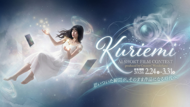 「Creators’ Wonderland Awards」の第一弾として、2026年2月24日より「くりえみAIフィルムコンテスト」を開催いたします。本コンテストは、AiHUBのCMOでありタレントの「くりえみ」の公式素材(画像・音声)を公開し、生成AIを活用して制作されたオリジナルの映像作品を募集するクリエイティブアワードです。■ 開催の背景:5,000動画の熱狂を、公式の共創スキームへ