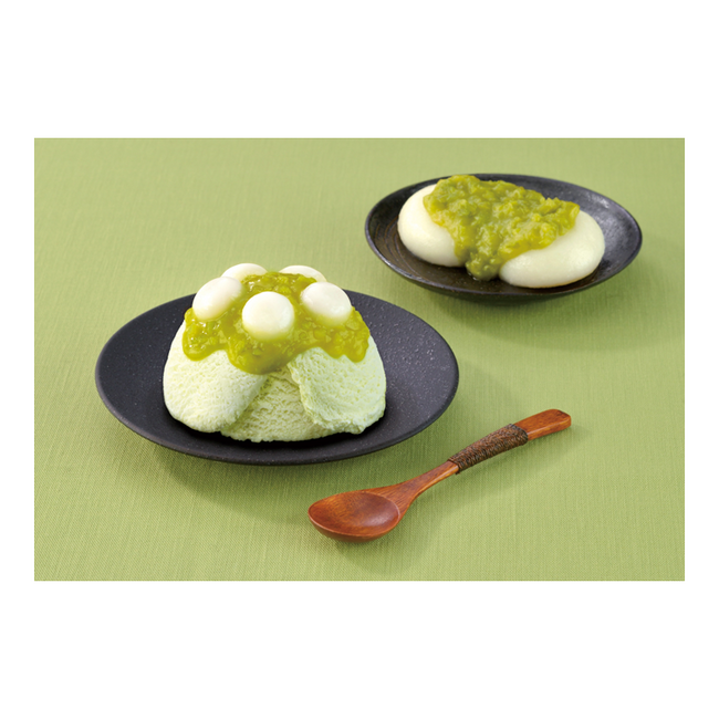 アイスには枝豆ペーストを配合し、なめらかで舌触りの良い、やさしいずんだ味に仕上げました。北海道産生クリームを使用し、ミルクのコクとバニラの香りを合わせることで、枝豆の風味を引き立てたまろやかな甘さが特長です。