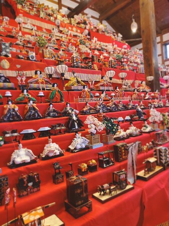 いにしえ街道沿道では、店先や玄関先に展示されたひな人形を眺めながら、町の方々と交流し、あたたかな空間を楽しむことができます。また、拠点会場となる「壱番蔵」では、天井まで高く積み上げられた大迫力のひな壇を見ることができ、「江差町会所会館」では、壁に沿って並べられたひな壇をじっくりと楽しむことができます。