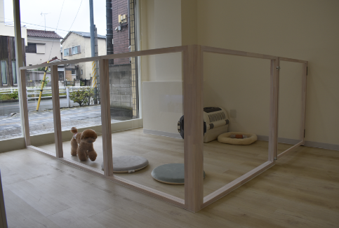 一頭ずつの丁寧なお預かりを基本とし、お預かり中のわんちゃんがのびのびと過ごせる、ゆったりとしたフリースペースも設置しています。また、専用駐車場を2台分用意しており、お車での来店も可能です。ストレスフリーな環境や高い利便性を通じて、より安心してご利用いただけるサロンを目指します。