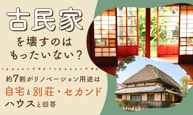 古民家を壊すのはもったいない?約3人に2人がリノベーション用途は「自宅」と「別荘・セカンドハウス」と回答