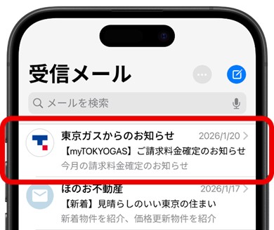 *1:ご利用のメールサービスや設定によっては、東京ガスロゴが表示されない場合があります。